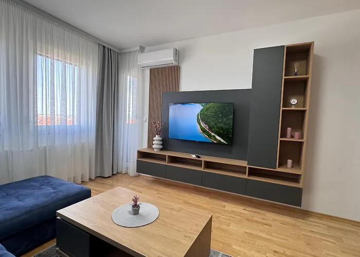 Das Apartman Nord Lux Bijeljina verfügt auch über eine voll ausgestattete Küche, ausgesttatet mit Geräten für die Zubereitung eigener Mahlzeiten. Genießen Sie Ihren Aufenthalt auf einer Terrasse.